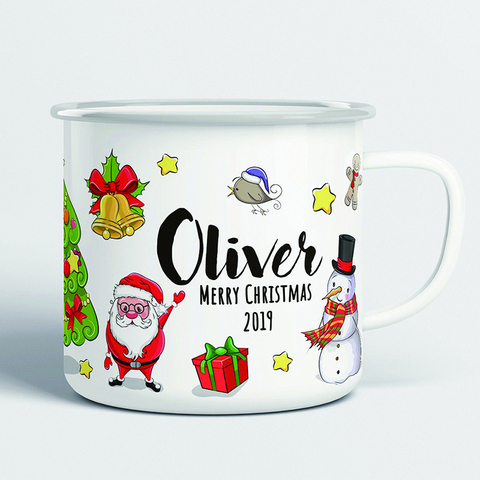 Klaar Om Te Verzenden Zonder Moq Sublimatie Gepersonaliseerde Diy 12Oz Aangepaste Witte Warmteoverdracht Emaille Cup Voor Kerst
